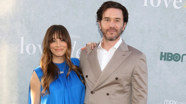 True to form, Cuoco also uses fashion as a way to honor her personal life. At her first red carpet appearance after welcoming daughter Matilda in 2023, she wore a simple nameplate necklace layered over a blue sheath gown at the premiere of HBO’s Love & Death. Stepping out alongside partner Tom Pelphrey to celebrate his role in the series, Cuoco radiated effortless elegance. Pelphrey couldn’t help but gush about the moment, telling ET, “This is our first date night since Matilda was born. It’s amazing. I mean, Kaley looks so beautiful. It’s a lot of fun.”